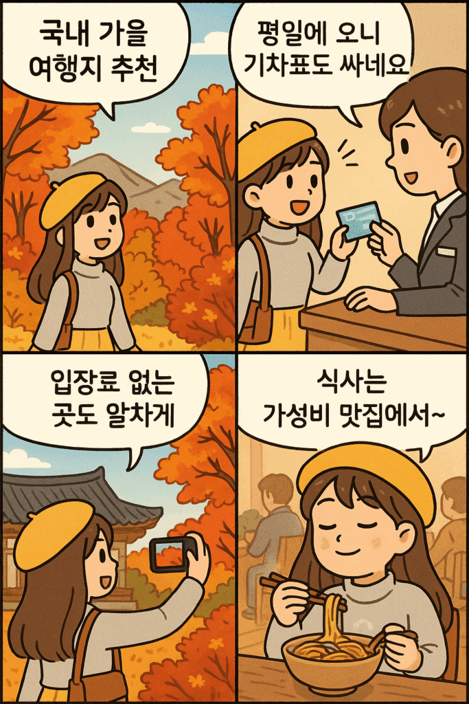 👉 오늘은 가을에 꼭 가볼 만한 국내 여행지와 함께, 교통·숙박·식비까지 아낄 수 있는 노하우를 알려드릴게요. 이 글만 보셔도 바로 여행 계획을 세울 수 있습니다.